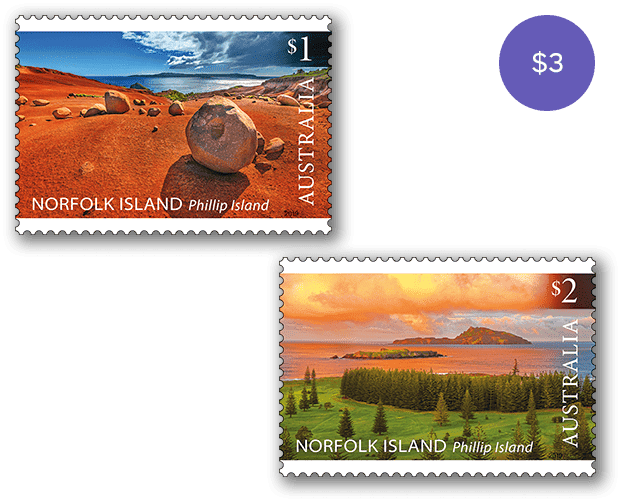 This set of stamps contains the two stamps from the Norfolk Island: Phillip Island Landscapes stamp issue.