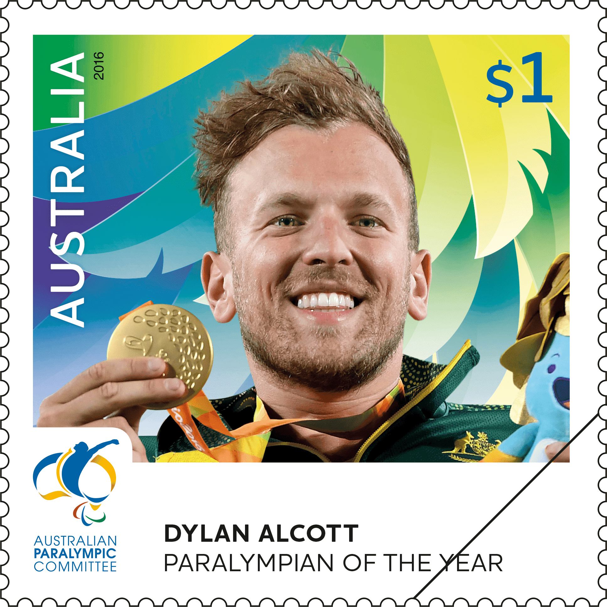The stamp photograph, courtesy of the Australian Paralympic Committee, shows 25-year-old Dylan Alcott with one of his gold medals from the 2016 Paralympic Games in Rio.
