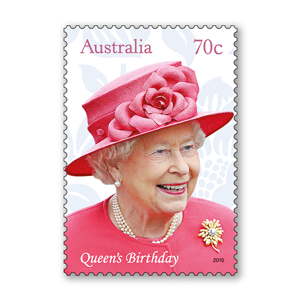 This stamp issue commemorates the Queen’s Birthday 2015. Australia Post has been issuing a stamp to commemorate the Queen’s birthday since 1980.