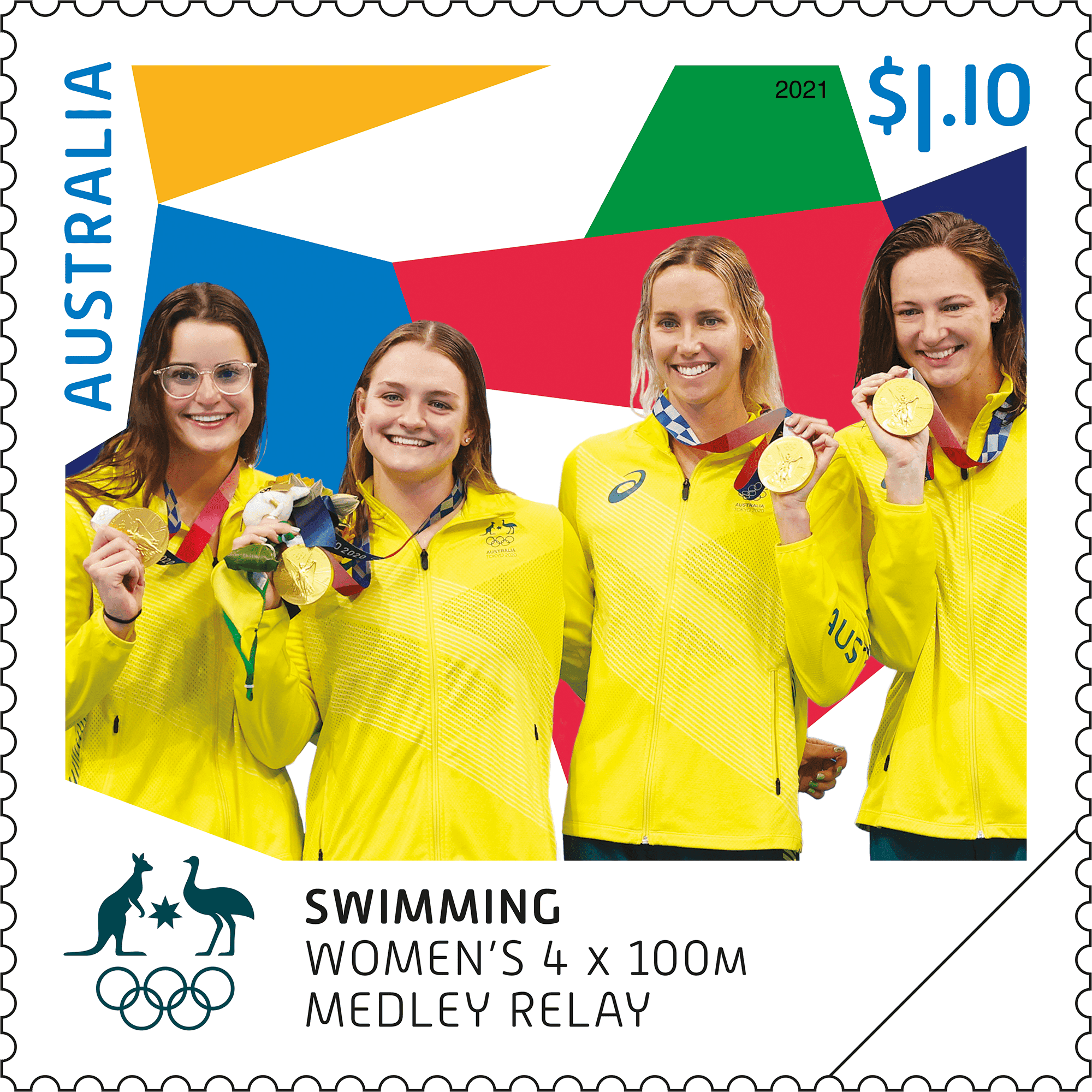 For each Australian gold medal performance at the Rio 2016 Olympic Games to date, Australia Post has produced a stamp in a sheetlet of 10. The stamp designs feature the athletes at their medal presentation ceremonies and have been made available for purchase within days of each presentation ceremony.