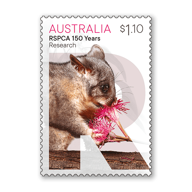 While the national organisation was technically formed in 1980, this stamp issue commemorates the founding of the movement for the prevention of cruelty to animals, recognising 150 years of caring for and protecting animals in Australia. The stamps represent five key aspects of the RSPCA’s mission and practice: research, shelter, protection, certification and advocacy. Together, the five stamp designs indicate the breadth of the RSPCA’s work across the domains of companion animals, livestock, animals in sport, recreation and industry, and wildlife.