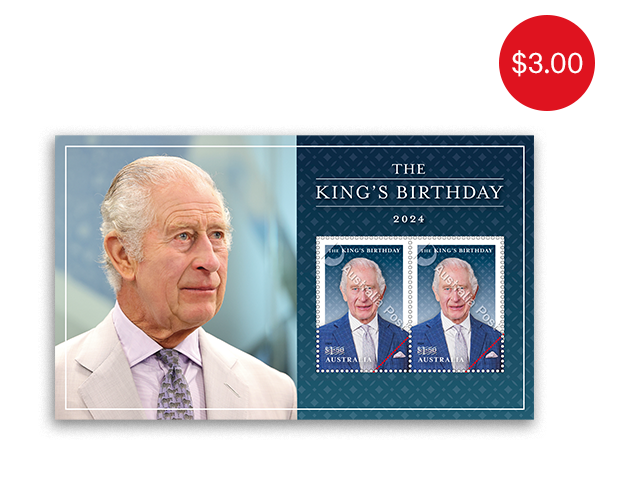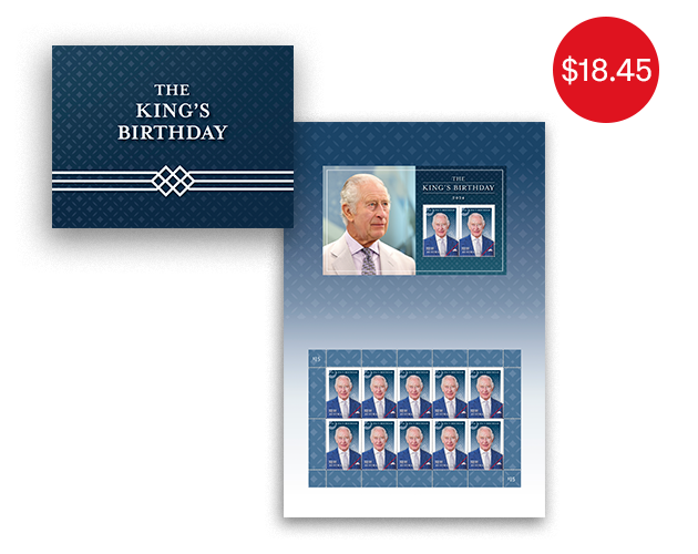 This The King's Birthday Stamp Pack includes a sheet of 10 stamps and minisheet from the stamp issue presented in a high-quality folder.