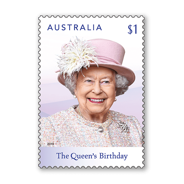 The Queen's Birthday 2019 minisheet consists of the two stamps from the issue incorporated into a miniature stamp sheet.